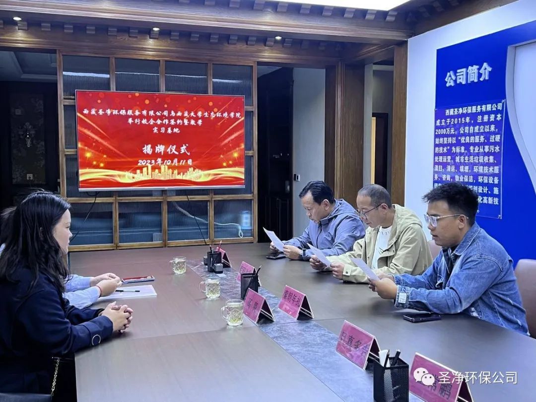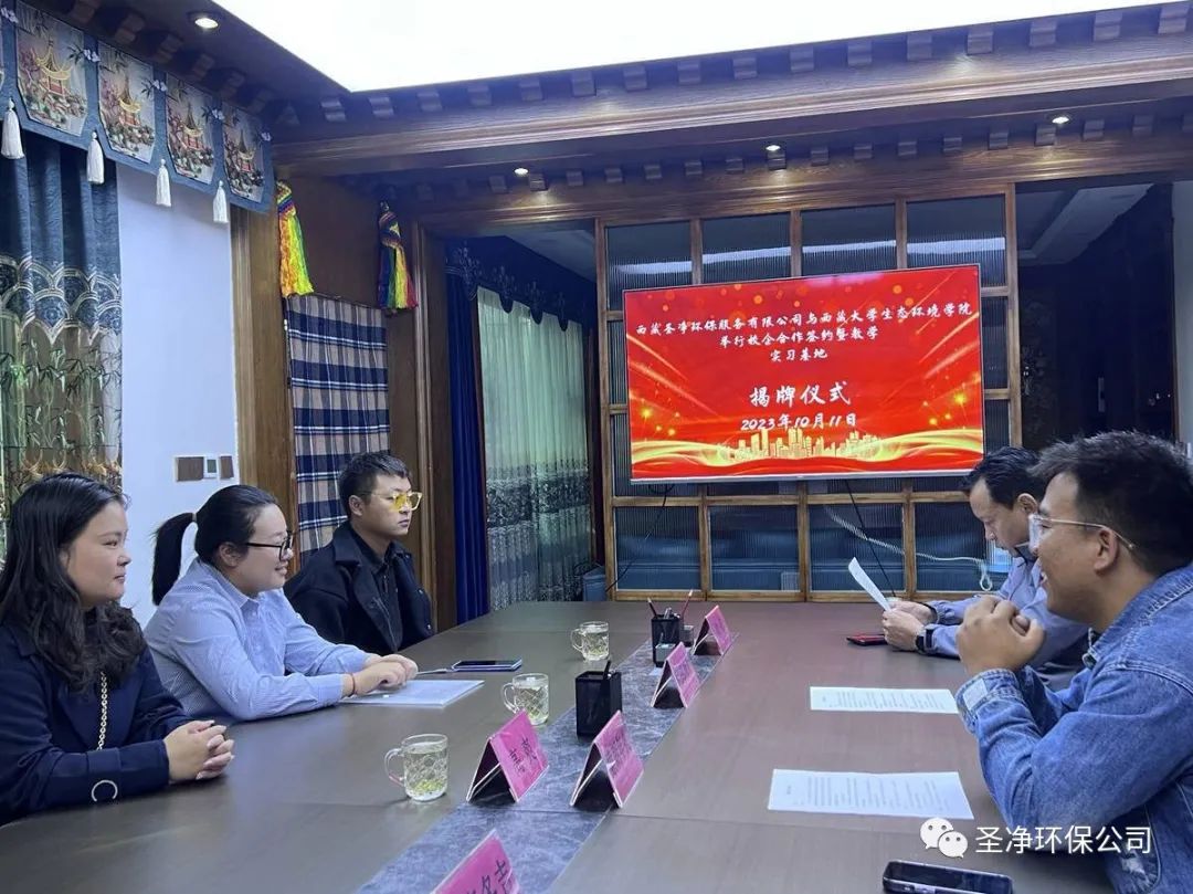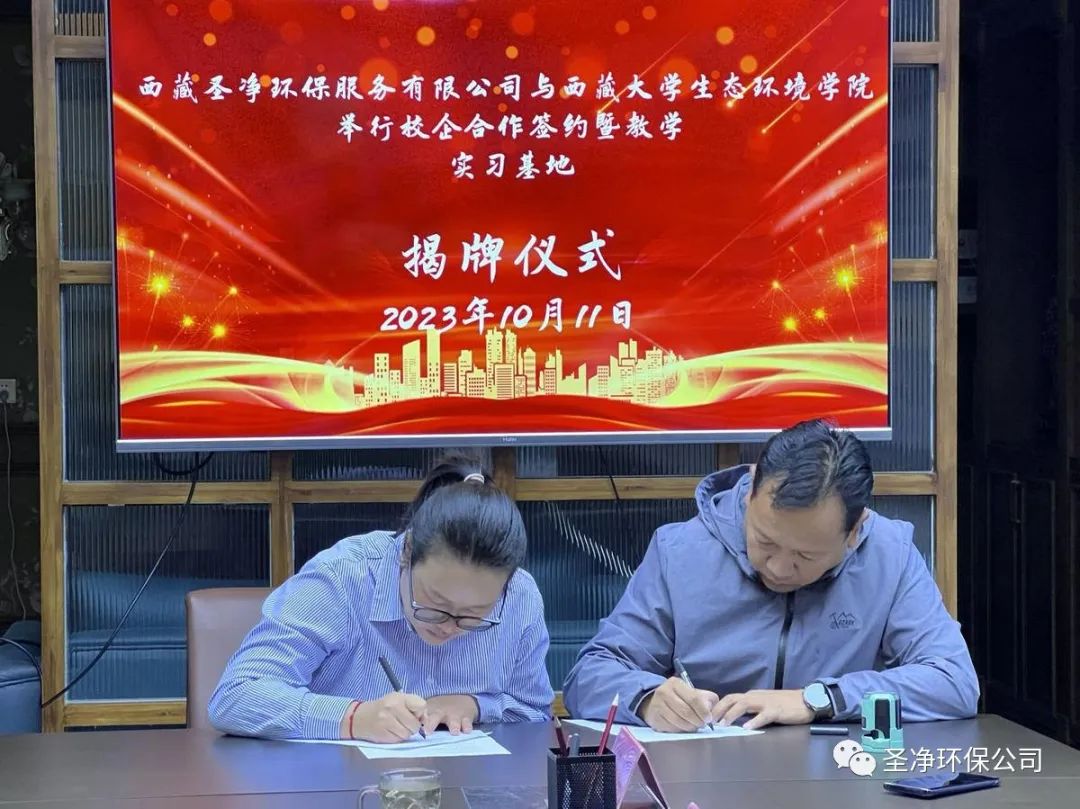 為進一步加強學校與企業(yè)的合作,適應產(chǎn)業(yè)發(fā)展的需求,共同做好畢業(yè)生的就業(yè)工作,并建立長期的人力資源供需協(xié)作關(guān)系,優(yōu)化企業(yè)的人力資源管理,充分發(fā)揮各自優(yōu)勢,促進雙方事業(yè)的共同發(fā)展。2023年10月11日,西藏圣凈環(huán)保服務(wù)有限公司與西藏大學生態(tài)環(huán)境學院校企合作簽約暨教學實習基地揭牌儀式在我司會議室舉行。