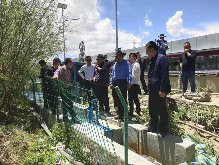 西藏自治區(qū)環(huán)保廳羅杰廳長等眾多領(lǐng)導(dǎo)蒞臨扎囊縣污水處理廠考評工作
