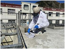 吉隆鎮(zhèn)污水處理廠化驗員在進水口、生化池、二沉池以及出水口四個點分別采集樣品。